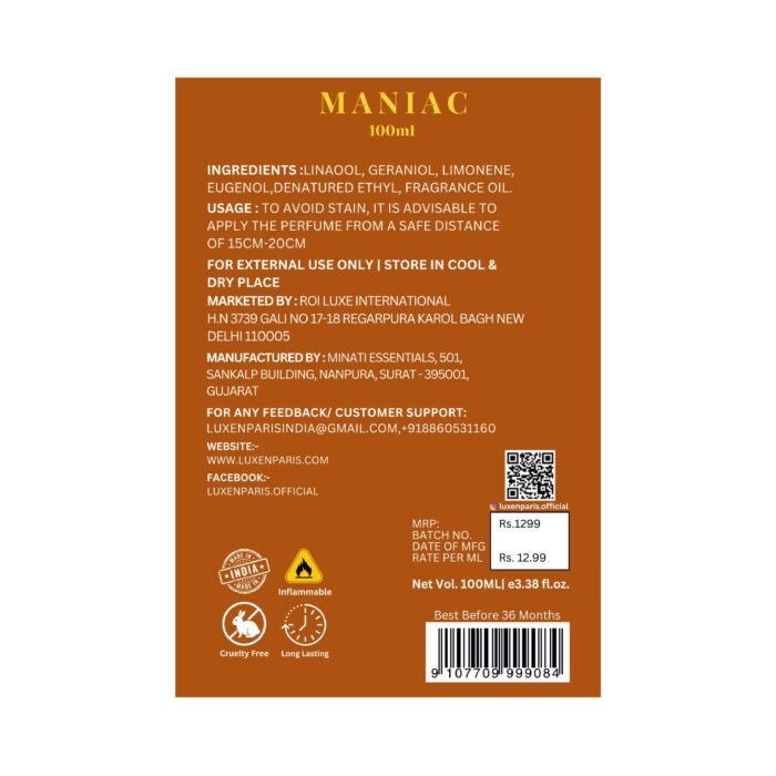 7 reviews for Maniac Eau de Parfum 100 ml | Citrus-Woody Luxury Perfume | LongLasting EDP | Unisex